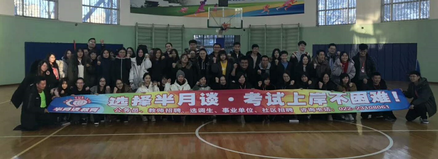 1129日,2018年年末,半月谈员工和学员一起参加“熔炼团队”为主题的拓展训练活动。这也是半月谈为学员送上的一份神秘大礼。在经过暖场热身之后,他们进行了极速60秒、挑战150等项目的体验和挑战,最后在激情动力圈中结束体验式培训,员工都深切感受到团队的力量,同时也提高了学员的自信心和对半月谈培训机构的信任感。“选择半月谈,考试上岸不困难”。